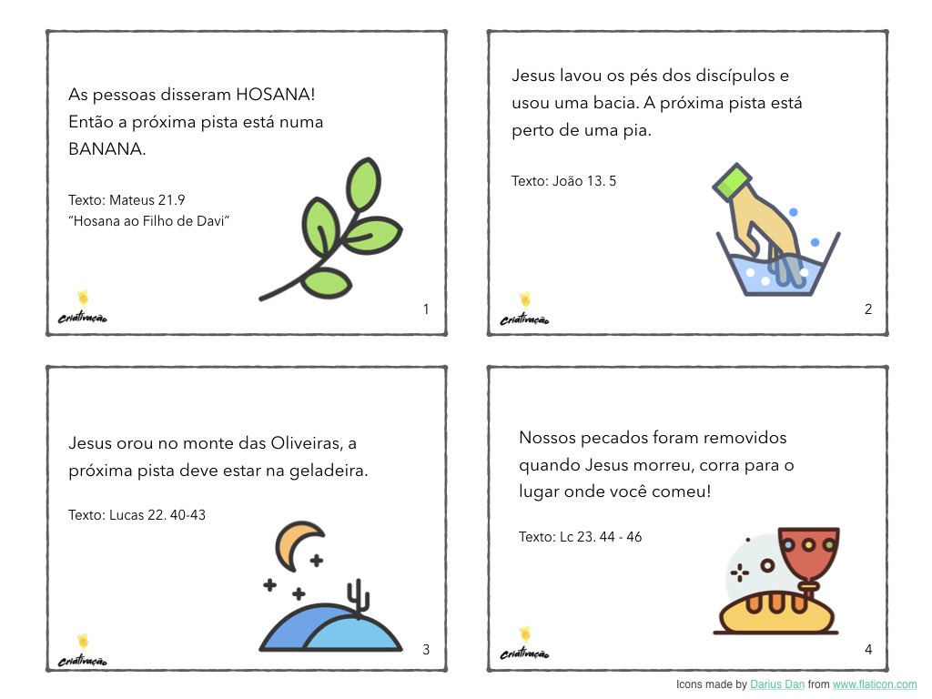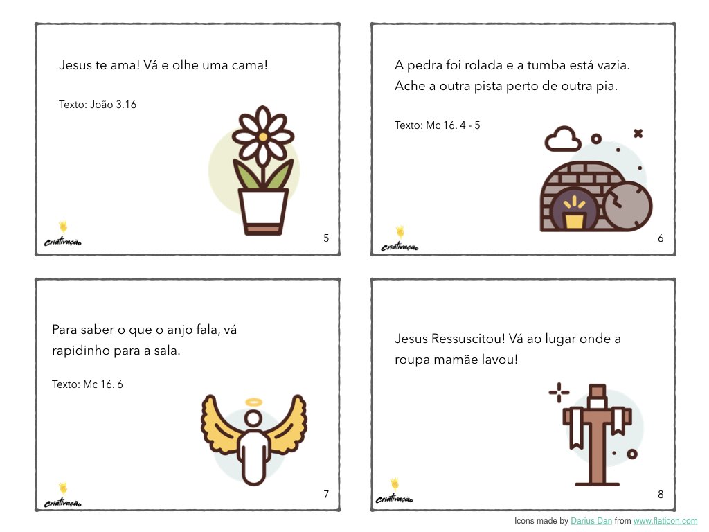 A ideia de hoje é um caça tesouro de Páscoa com sugestão para utiliza-lo em um culto doméstico.