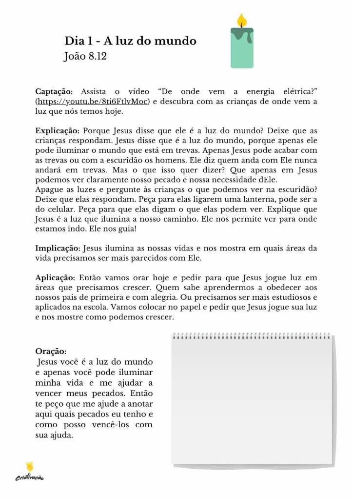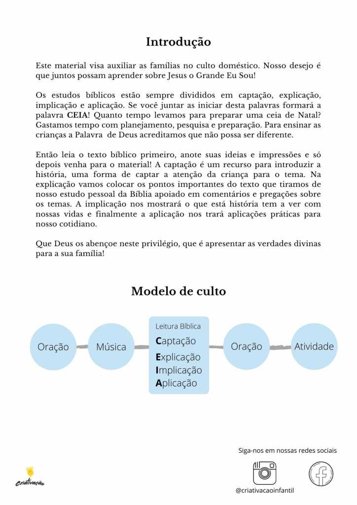 Esta é o segundo volume da série de materiais para estudo bíblico chamada “Eu sou” que são baseadas nas declarações de Jesus em João, quando ele relata que é a luz do mundo, o pão da vida, a porta das ovelhas, o bom pastor, a ressureição e a vida, o caminho, a verdade e a vida e a videira verdadeira. O primeiro volume é “Eu sou o pão da vida”, e se não baixou ainda, corre lá para baixar.